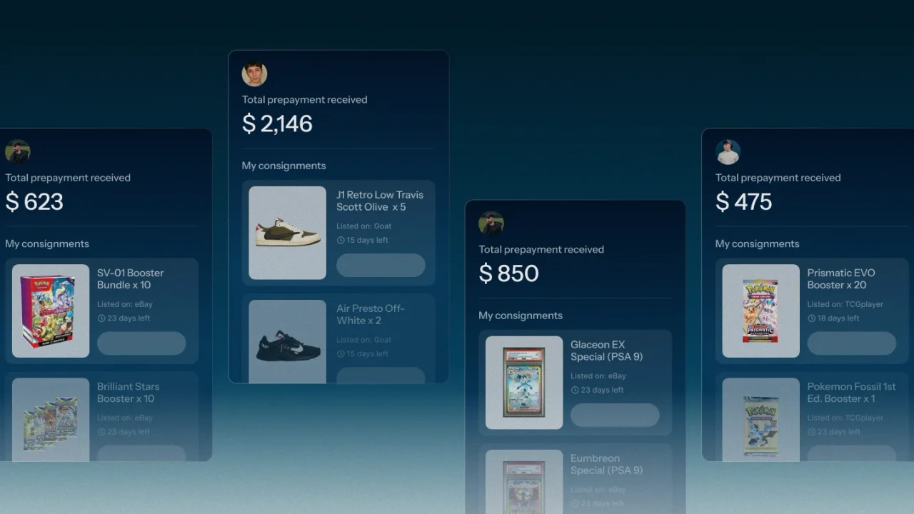Cross-listing means we list your items on multiple platforms (eBay, StockX, GOAT, etc.). When items sell, proceeds go toward your balance, and any profit above your pledge amount is shared with you.